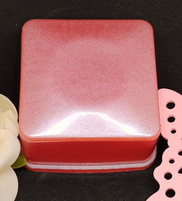 Petite boîte carrée en résine époxy. Couleur rose pastel.